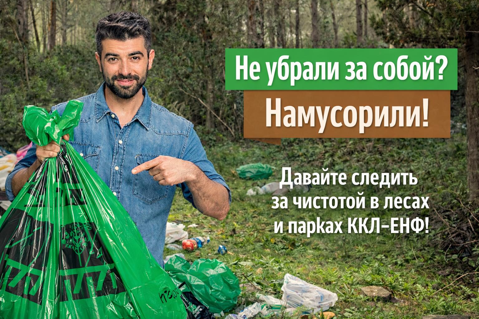 Посещение парков и лесов Еврейского Национального Фонда иногда оставляет горький осадок, особенно после выходных или праздников. Люди приезжают на чистые, ухоженные площадки для пикников, наслаждаются природой, а после себя оставляют горы мусора: объедки, помятые консервные банки, пустые пластиковые бутылки и разлетающиеся на ветру целлофановые пакеты. Эта удручающая картина — вовсе не стихийное бедствие, неподвластное человеку. Лесники и сотрудники ККЛ-ЕНФ каждый раз заново поражаются тому, что это — прямой результат пребывания людей на природе.